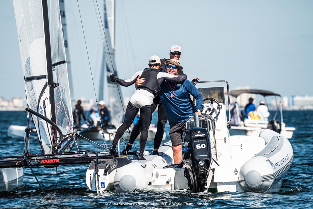 Ravi Parent and Severin Gramm receive congratulations from Peter Vink, owner and technical director of Nacra Sailing and Performance Sails, moments after crossing the finish line.Photo: Anna SuslovaPhoto: Anna SuslovaPhoto: Anna SuslovaPhoto: Anna Suslova2022 Immunolin F18 World Champions Ravi Parent and Severin Gramm Photo: Anna Suslova2022 Immunolin F18 World Champions Ravi Parent and Severin Gramm Photo: Anna SuslovaPhoto: Anna SuslovaPhoto: Anna Suslova4th place: Toni Rivas Mas / Jordi Sanchez Perez, Spain Photo: Anna SuslovaThird place, Cruz Gonzalez Smith /Mariano Derek Heuser, Argentina Photo: Anna SuslovaSecond place: Gavin Colby / Kai Colman, Australia Photo: Anna SuslovaPhoto: Anna SuslovaPhoto: Anna SuslovaPhoto: Anna SuslovaPhoto: Anna SuslovaPhoto: Anna SuslovaPhoto: Anna SuslovaPhoto: Anna SuslovaPhoto: Anna SuslovaPhoto: Anna SuslovaPhoto: Anna SuslovaPhoto: Anna Suslova