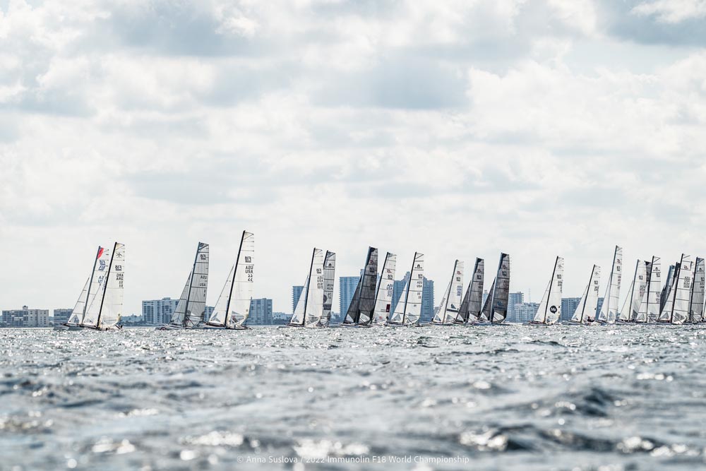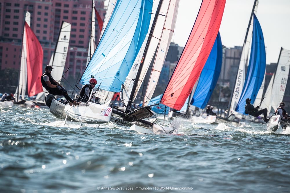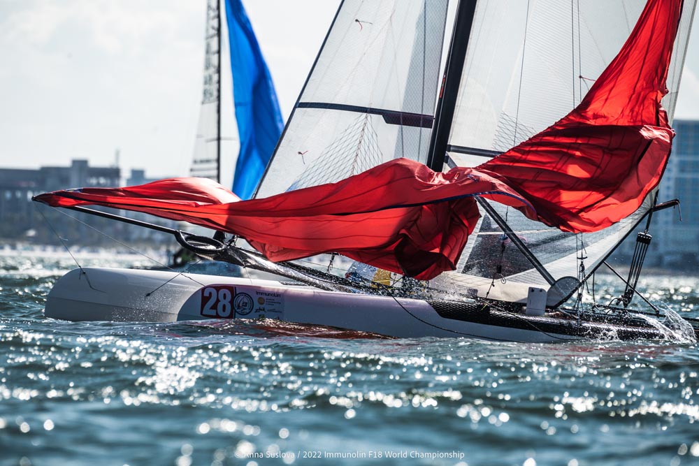 Regatta photographer Anna Suslova’s photos from Saturday, October 16, 2022. These high quality photos and more will be available for purchase after the regatta. Today is the final day of the regatta. We hope you have been enjoying the Facebook live feeds, Icarus videos, and the professional photos. Stay tuned today to find out who wins the 2022 Immunolin F18 World Championship. Ways to Follow the Regatta: This website https://www.f18world2022.org/ Daily highlight videos on this website. Facebook Live Feeds From the Water on the Red Gear Racing Facebook Red Gear Racing Instagram TracTrac Race Tracking. Link to follow online or to download the app. Results Schedule Race Documents (NOR, Sailing Instructions, Registered Competitors)