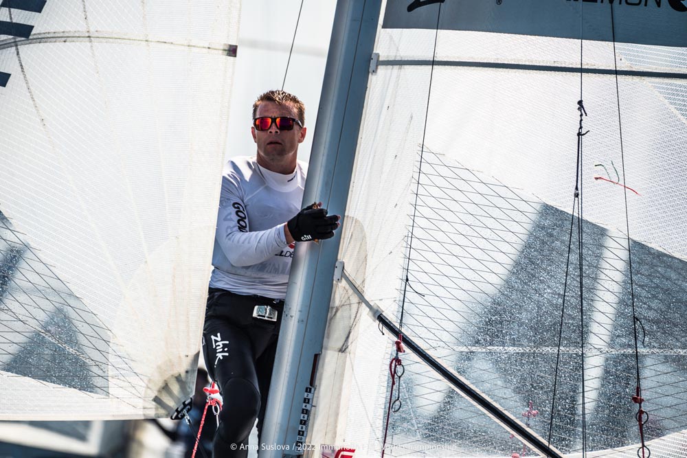 USA’s Ravi Parent, the winner of the recent F18 European Championship, and Severin Gramm took race 2. Argentina’s Cruz Gonzalez Smith and Mariano Heuser won the day’s last race. Parent and Gramm sit in first tonight with 9 points, while the Greek team of Iordanis Paschalidis and Konstantinos Trigkonis are a close second with 12 points. . There are three teams tied for third with 16 points, Argentinas’ Cruz Gonzalez Smith and Mariano Heuser, Australia’s Gavin Colby and Kai Colman, and Spain’s Toni Rivas Mas and Jordi Sanchez Perez.